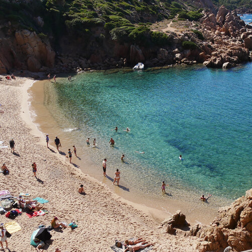 2 kilométerre található Spiaggia di Lu Bagnu ez a gyönyörű, homokos partszakasz.