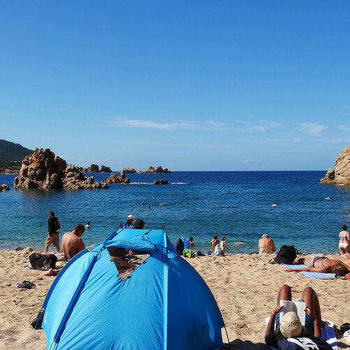 45 percre Li Cossi - A Li Cossi egy varázslatos, aranyszínű homokos strand, amelyet tiszta türkizkék tenger mos. Egy védett öbölben található, érdekes formációkat alkotó sziklákkal körülvéve. A strandot vagy gyalogosan Costa Paradiso faluból lehet megközelíteni (figyelem, ez a séta sziklákba vájt lépcsőkön kb 20 perc a parkolóból - Parcheggio Spiaggia Li Cossi) ahol séta közben élvezhetjük a csodálatos panorámát, vagy csónakkal. Ingyenes a parkolás, de érdemes kora reggel menni, hogy az öbölben még legyen helyünk.